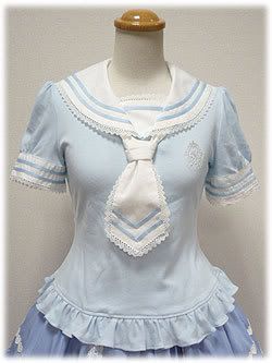 I wanted something similar to this, but more subdued. I wanted it to have puffy sleeves, a sailor collar and a tie. I found this sweater at Salvation Army for $5, and saw its potential. It has front pockets, 3/4 sleeves, a ribbed band on the bottom, and little to no shape.