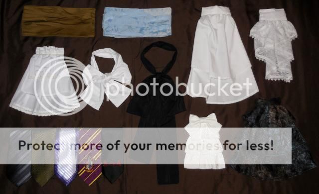 All cravats, ribbon ties, and jabots (except the little white jabot in the bottom row, which is by IW) were handmade by me.